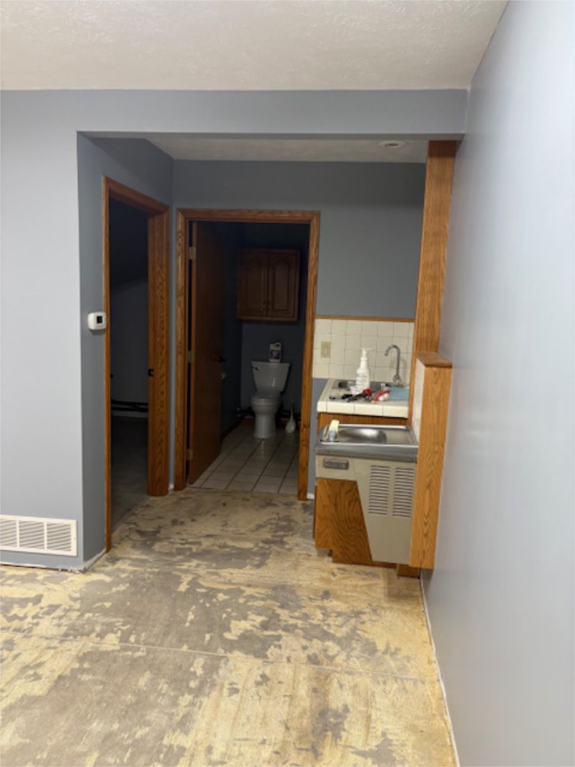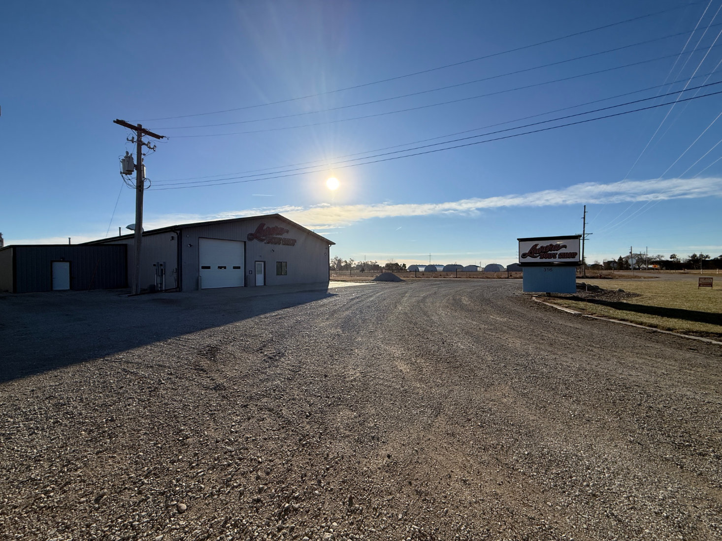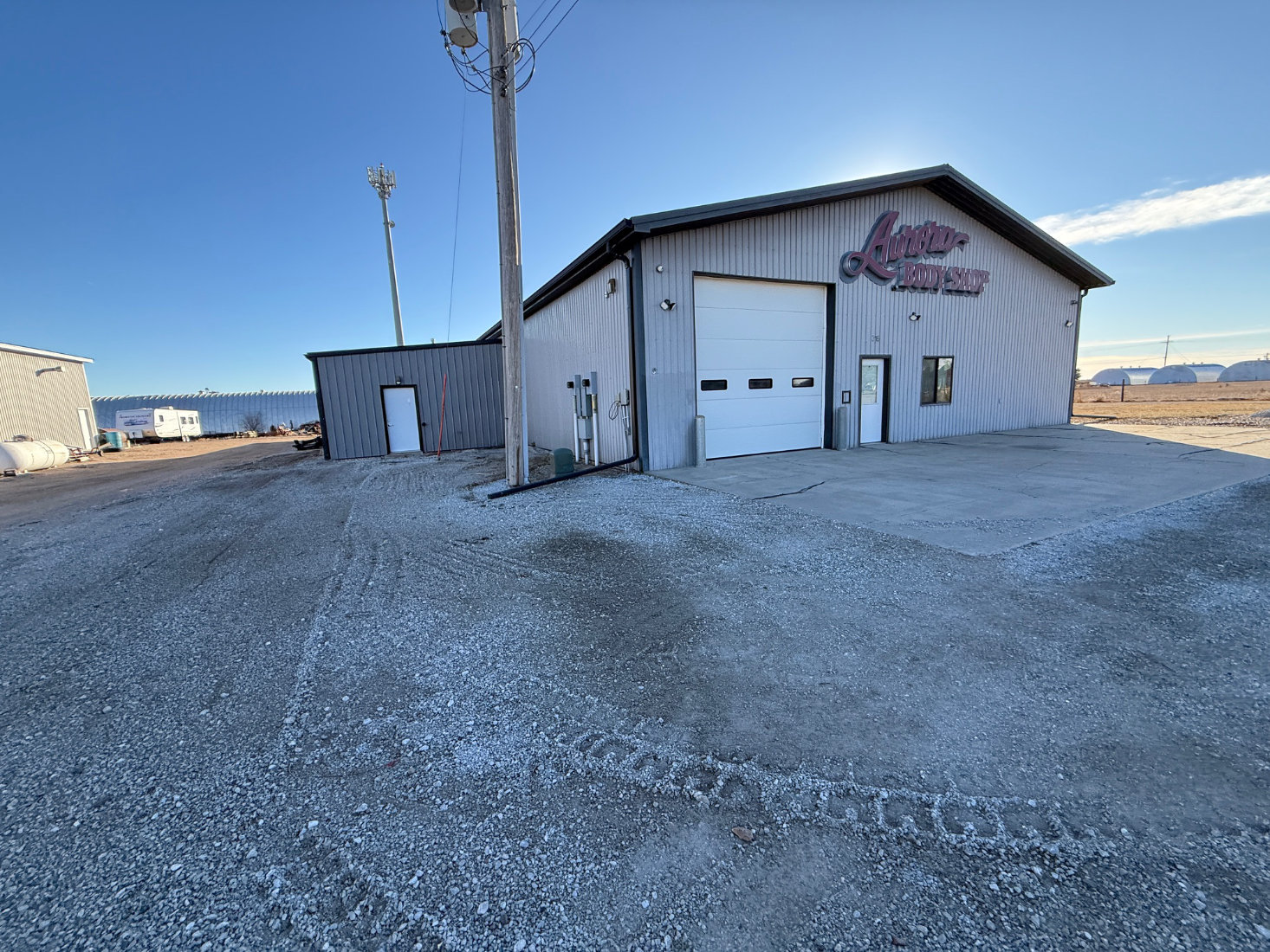 The property features: concrete parking lot, 3 overhead doors for easy access, ideal for automotive services or other commercial uses in a highly visibility location with ample space for operations.