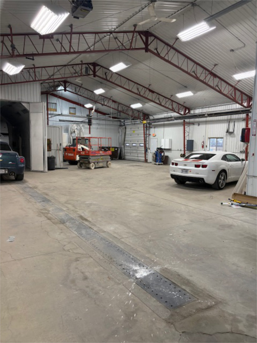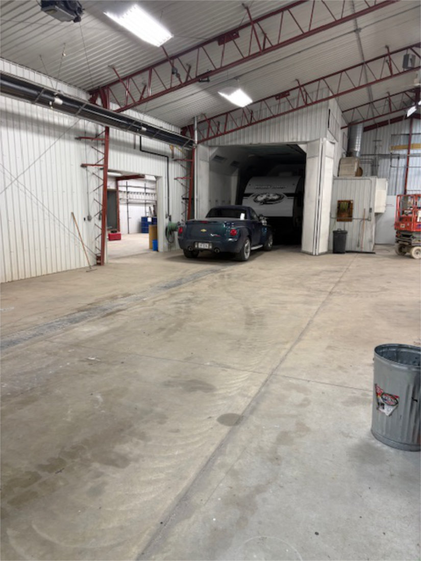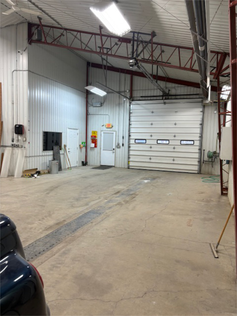 Property Details: Total Building Size: 5,000 sq ft, with main service area: 3,520 sq ft (previously used as a body shop), additional north space: 1,000 sq ft, and office Space: 480 sq ft.