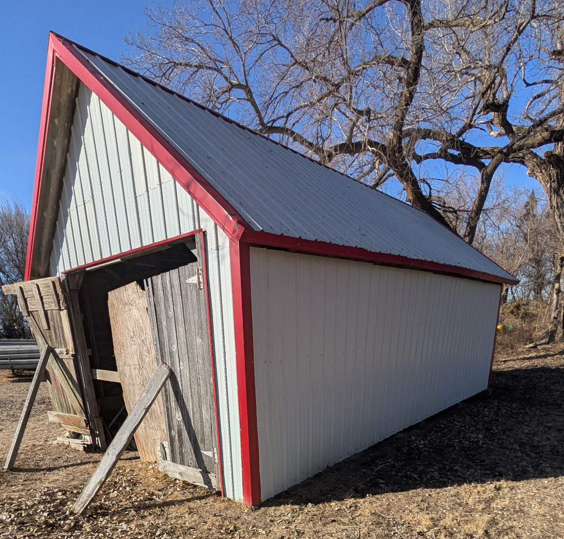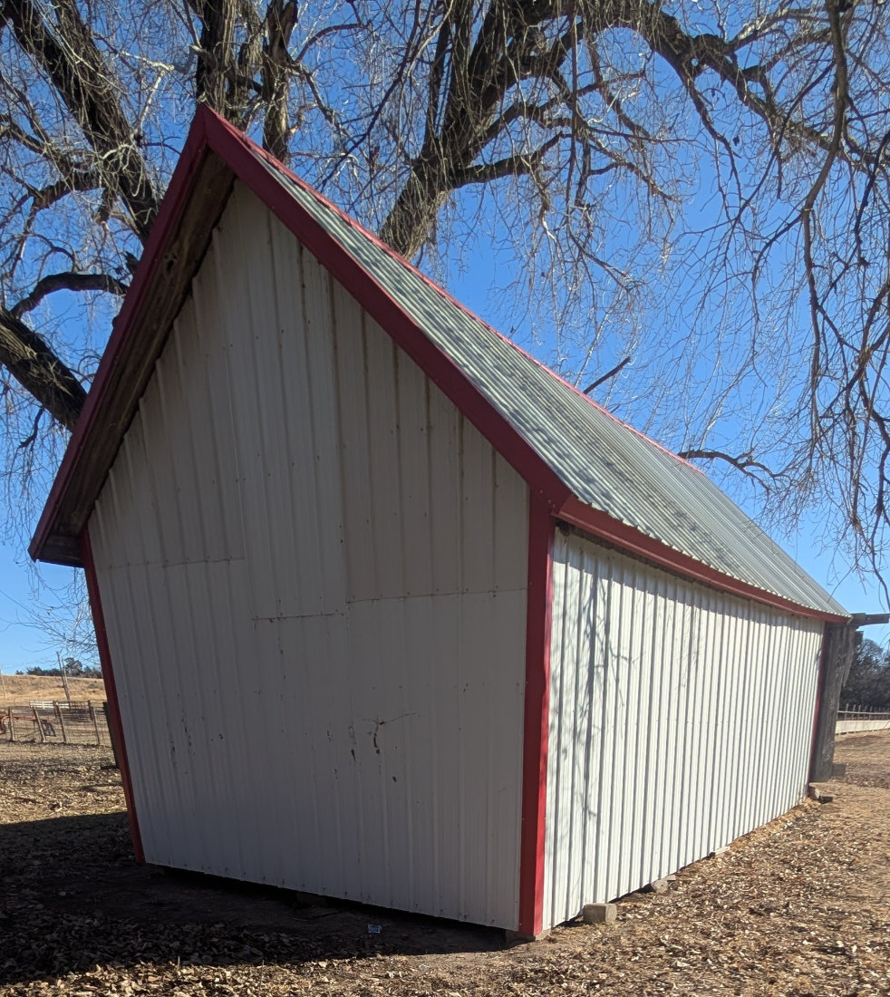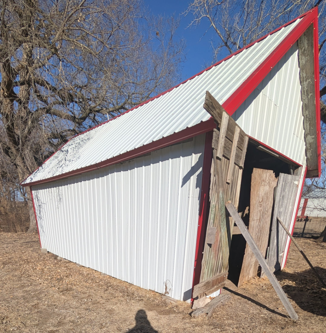 SHED – TO BE MOVED BY JUNE 1ST; 20X28’ wood framed shed w/all metal siding & roof.