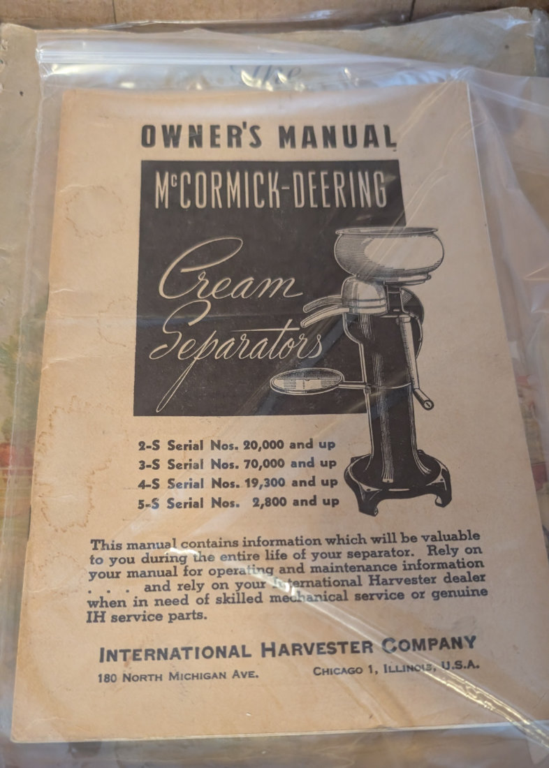 - McCormick Deering Cream Separator Manual;