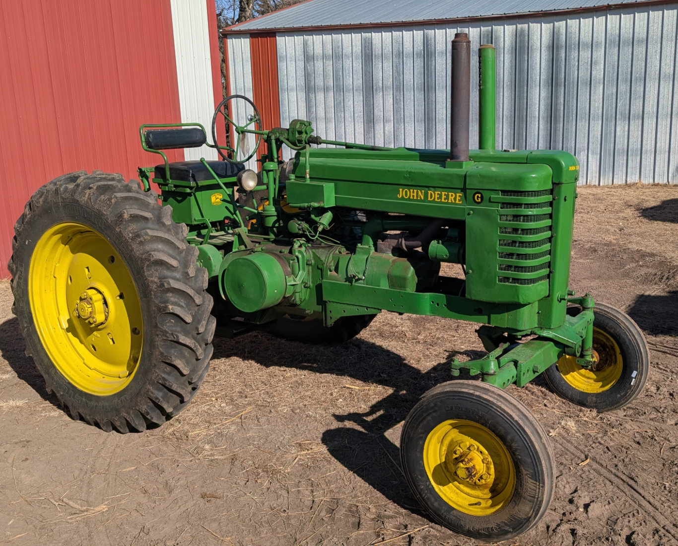 - John Deere Style G, 3 pt, Factory WFE, Behlen PS, Baker Unit Hydraulics, Recently Overhauled; SN 58080; 1st tractor Dick started farming with this tractor