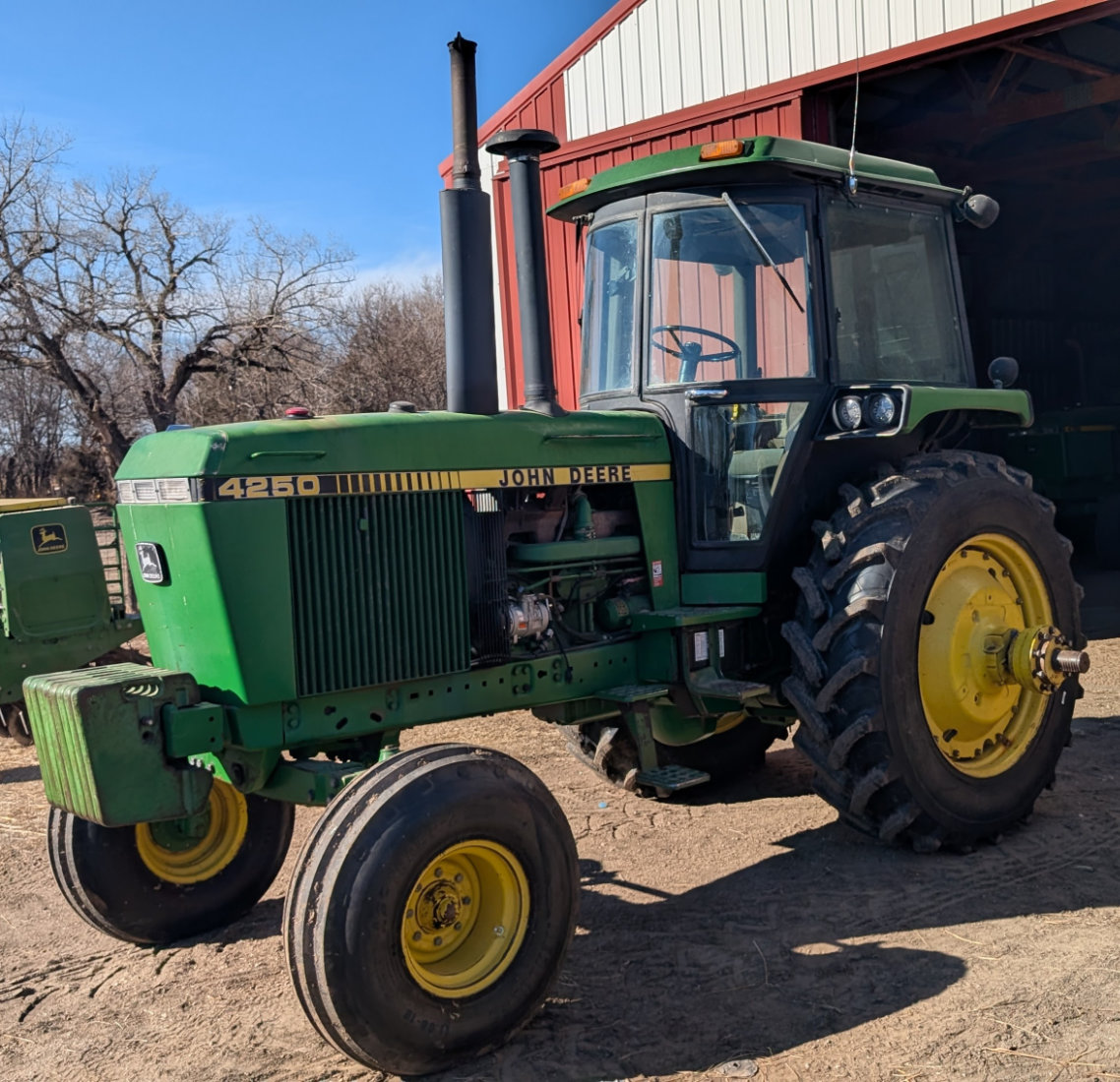 - John Deere 4250, 15 sp. PS, Frt. Wts., QH w/Gnuse Hyd. 3rd Arm, All New Tires Front & Rear, Duals (not new) SN 4250P02199; 10,379 actual Hours, one owner;