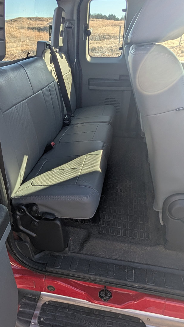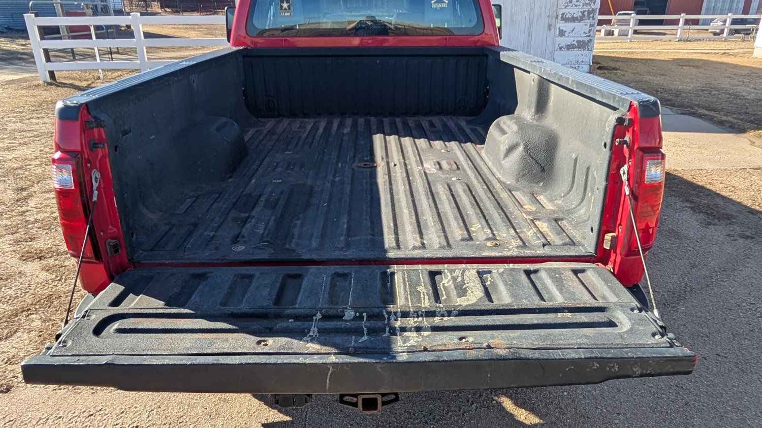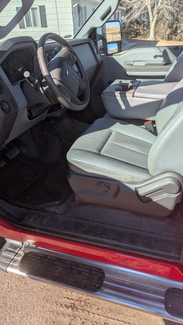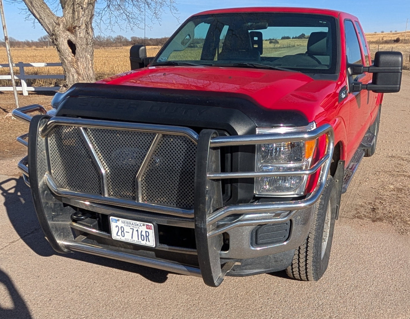 - 2012 Ford Super Duty F-350 Extended Cab 4WD, V8 Gas, Automatic, 46,320 one owner, Red, Front Cattle Guard, 5th wheel ball.