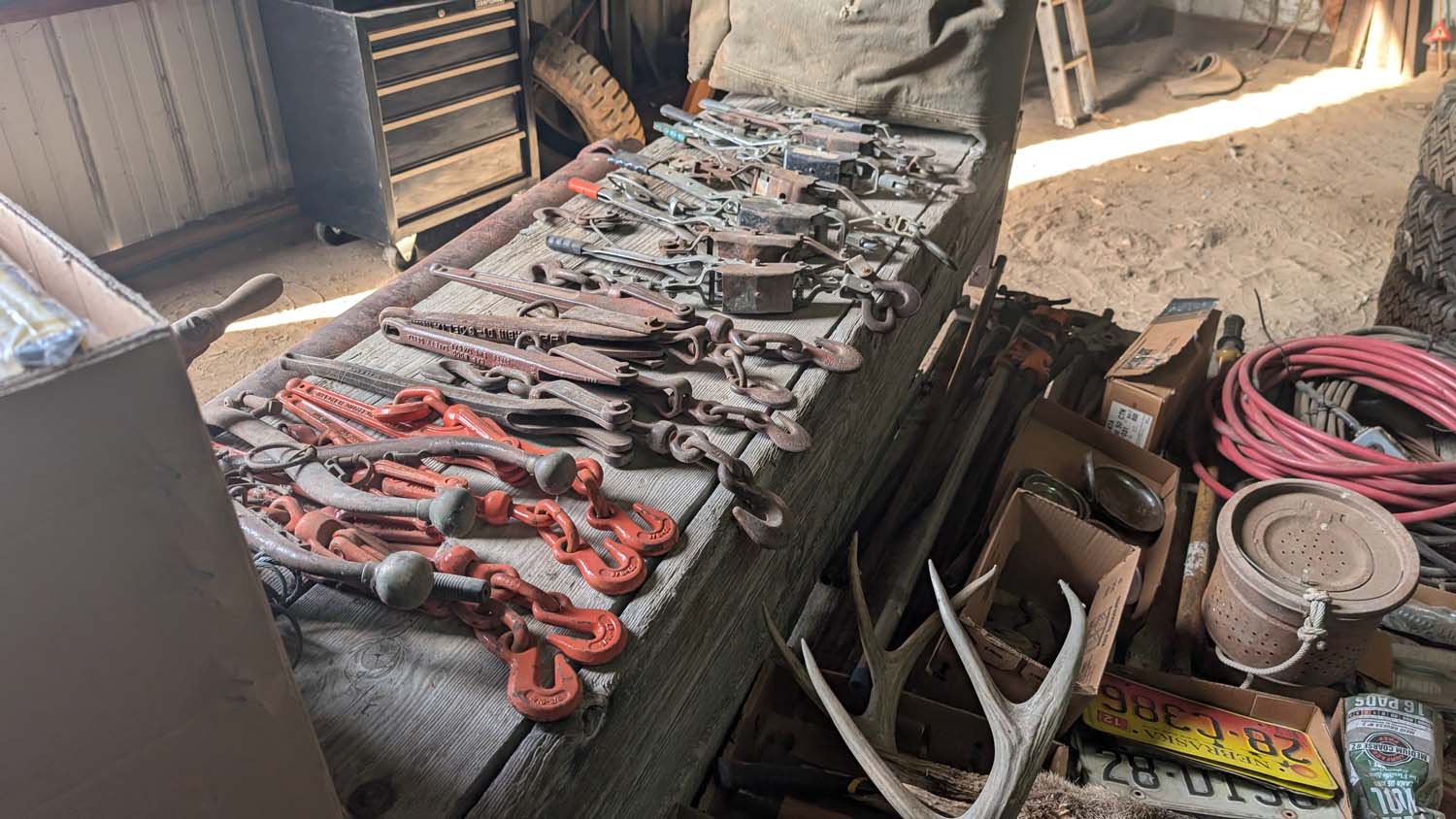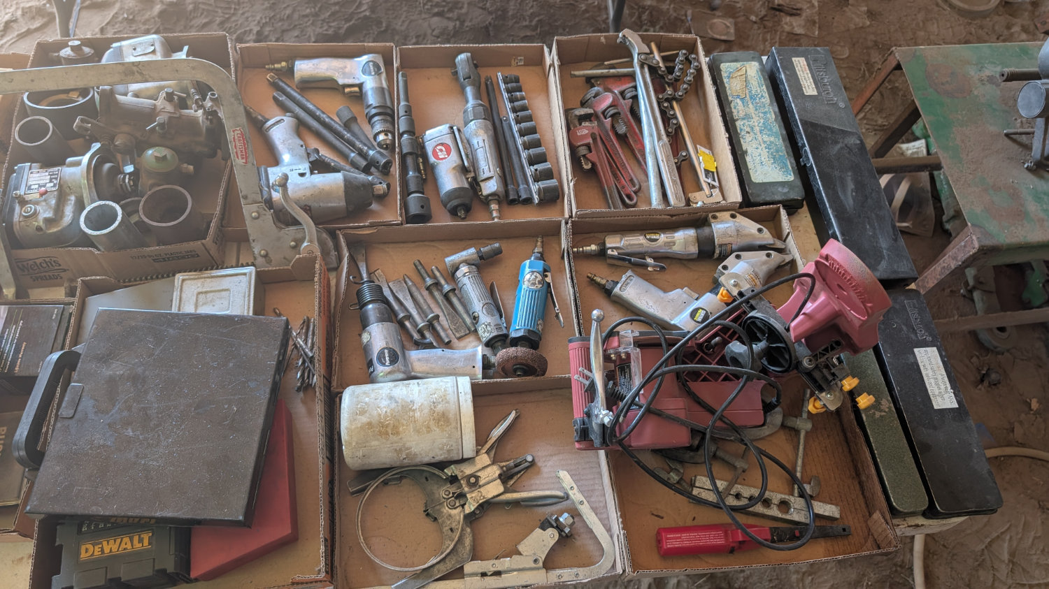 OTHER TOOLS & SHOP EQUIPMENT; Dual Saw Everyday CS 450; Arbor Press; Lots of Air Impacts; Pipe Wrenches; Crescent Wrenches; Many Wrench Sets; Vise Grips; Gear Wrenches; Tool Sets; Gear Pullers; Gauges; Screwdrivers; T Handled; Several Precision Sets; 45 Pc Tap & Die Set; Hyd Jacks; Tire Irons; Several Vise Grips from DeWitt, NE;
