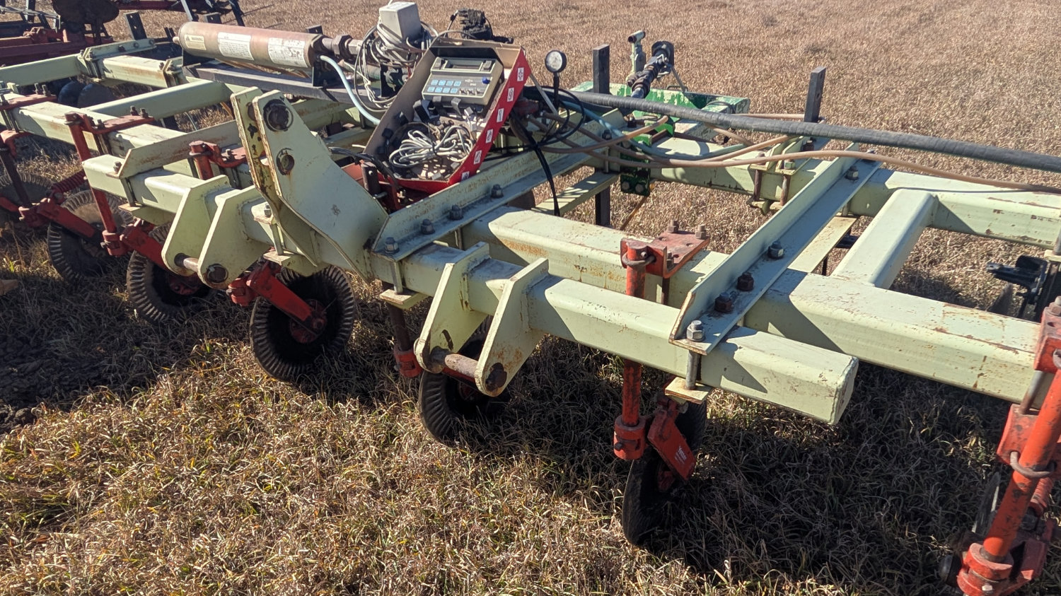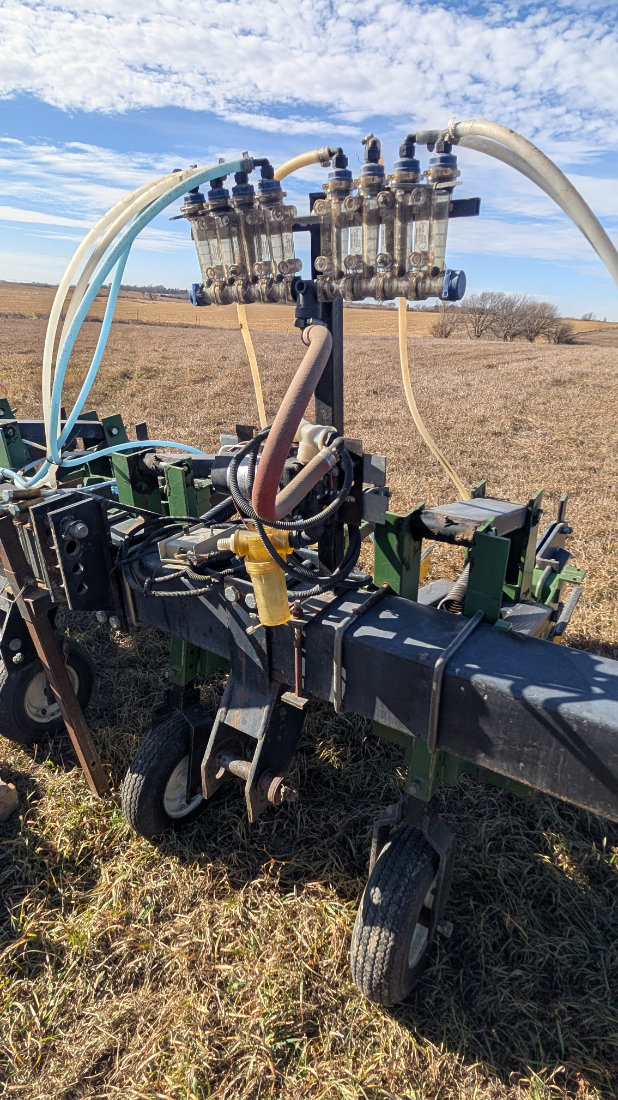- Orthman/Hiebner Double 4×7 Bar NH3 Applicator, Hiniker & Controls, Yetter Coulters, 9 knives, dual gauge wheels