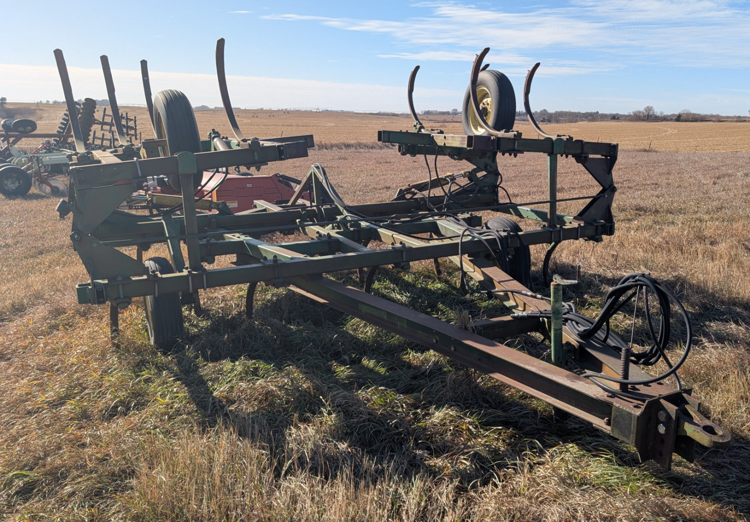 - John Deere 1610 21’ pull-type chisel, flat fold wings, rear draw bar