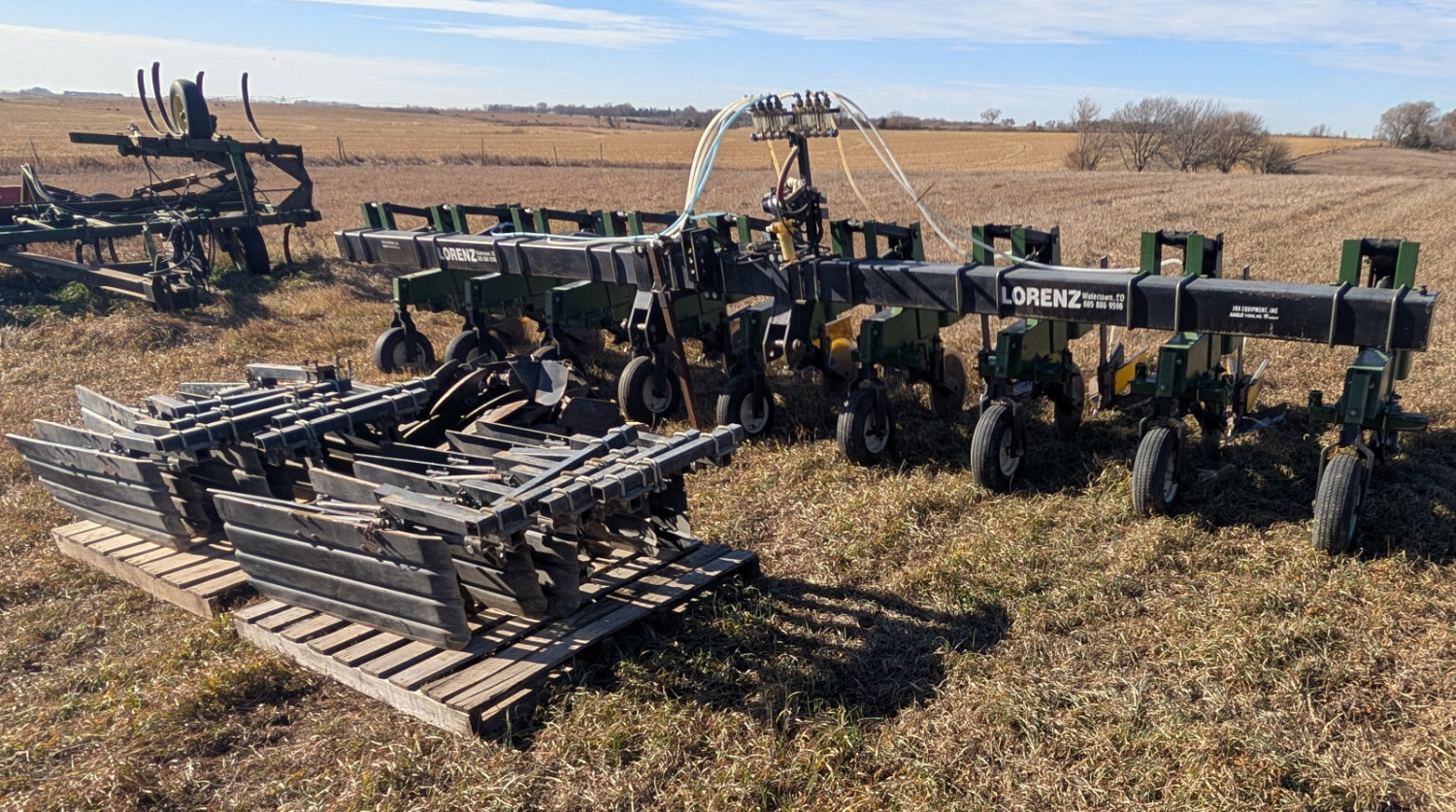 - Lorenz 8R 30” cultivator, Baring off disk, shields and Goertzen Sweeps & Fert. Tubes